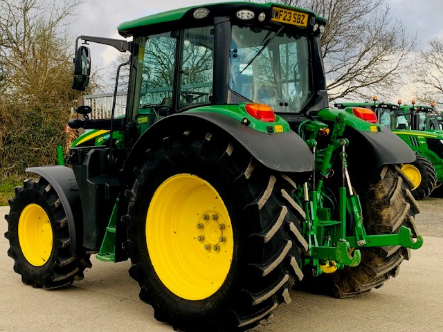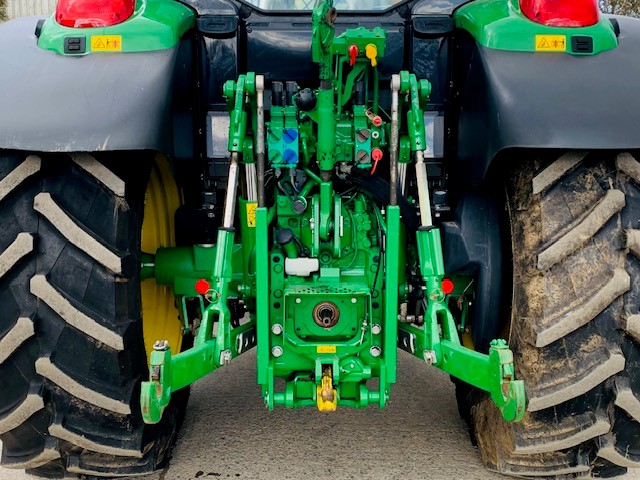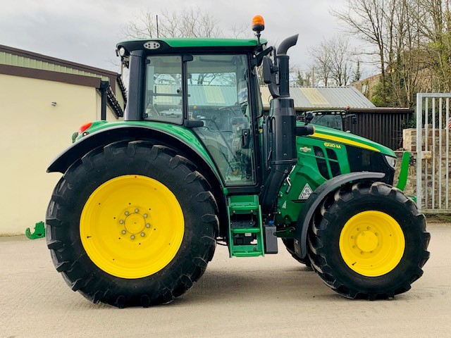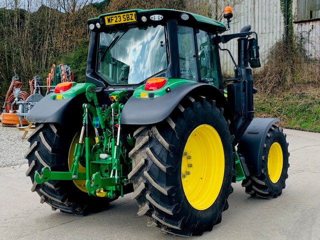 EX HIRE JOHN DEERE 6120M SELECT+ EDITION. 40KPH AUTOQUAD, TLS, 114LPM PFC HYD PUMP, 3 REAR & 2 MID MECHANICAL VALVES, PANORAMIC GLASS ROOF, LED LIGHTS, ITEC, JDLINK. ON 520/70R38 420/70R24 TRELLEBORG. READY TO TAKE JOHN DEERE LOADER WITH MULTI COUPLER. WITH POWERGARD PLUS EXTENDED WARRANTY TO MARCH 2026.