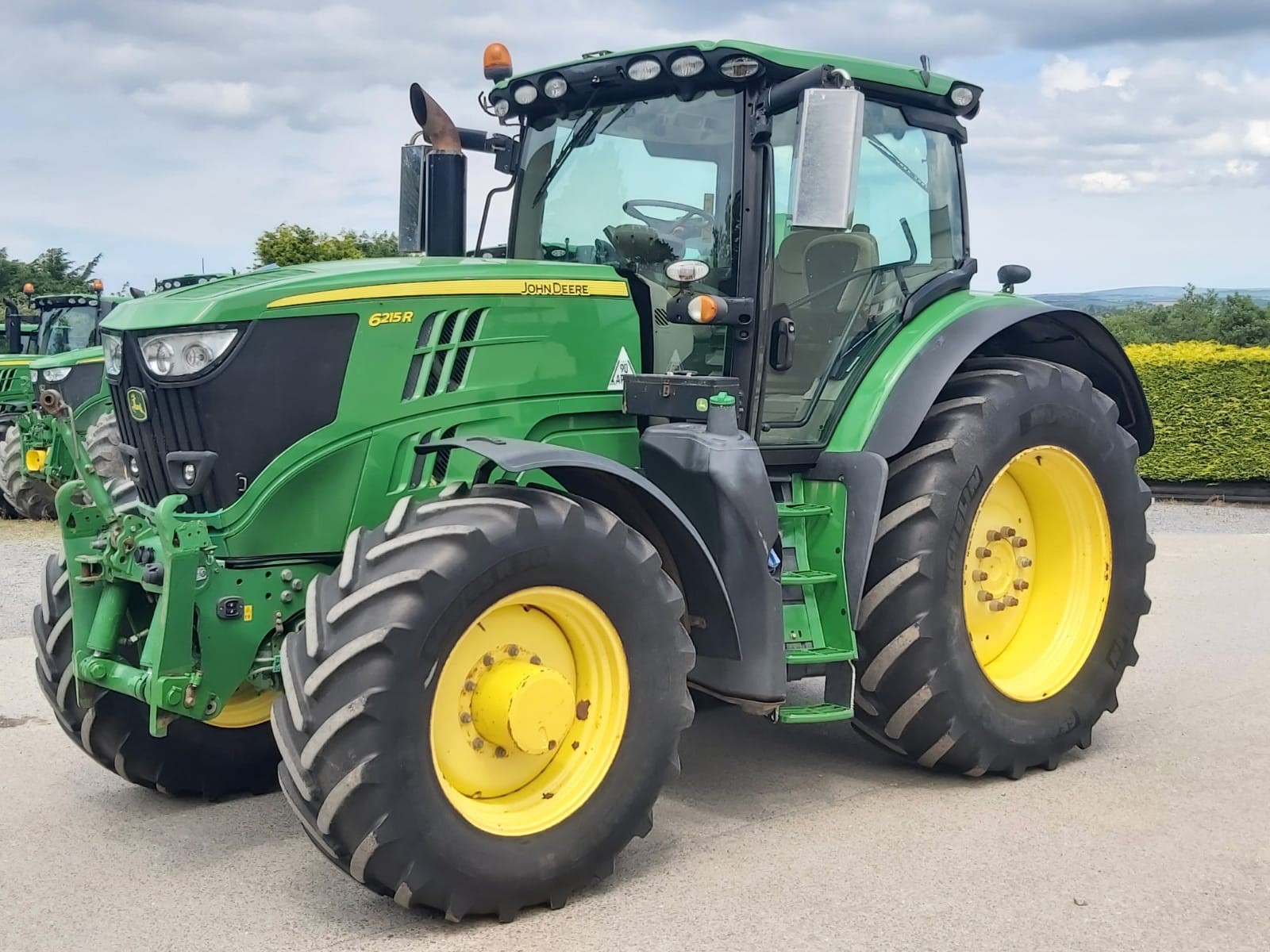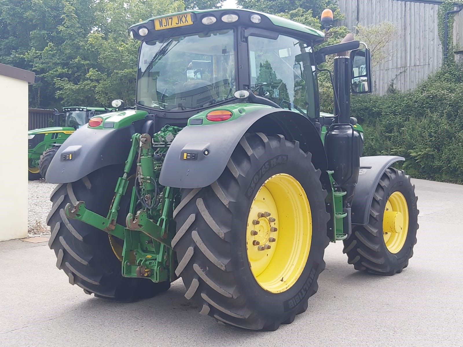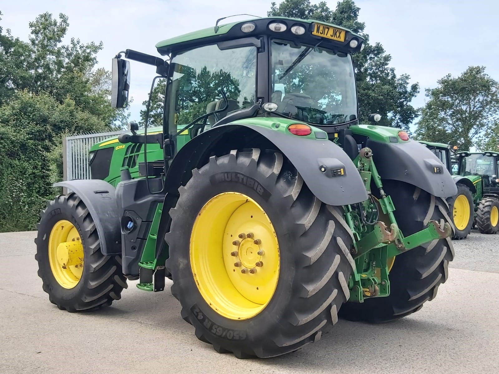 2017 JOHN DEERE 6215R. 50KPH AUTOPOWR, FULL SUSPENSION, AUTOTRAC READY, 4600 COMMAND CENTRE DISPLAY WITH AUTOTRAC ACTIVATION, 4 ELECTRIC REAR VALVES, HYDRAULIC TOPLINK, AIR TRAILER BRAKES, FRONT LINKAGE. ON 650/65R42 & 540/65R30 MICHELIN @ 40% APPROX.