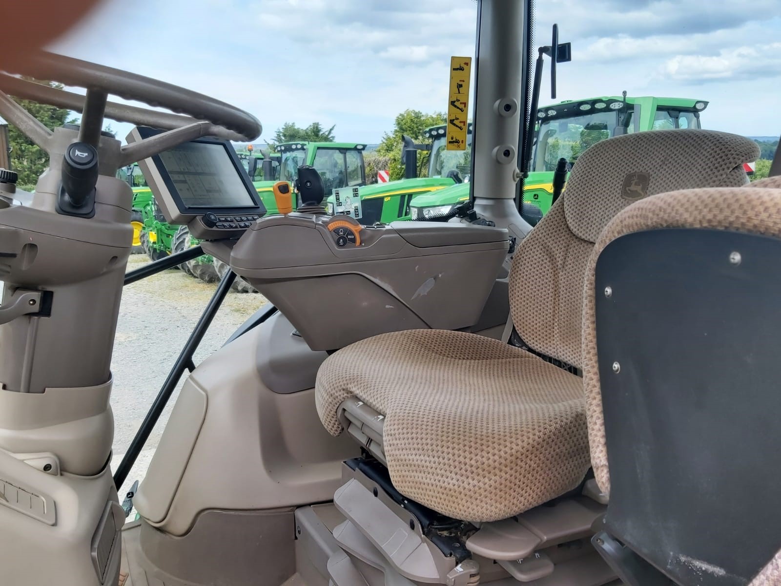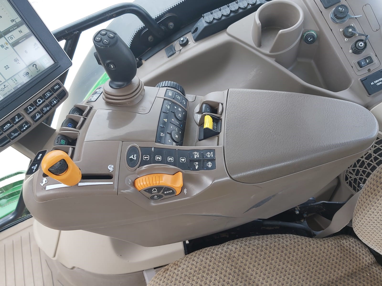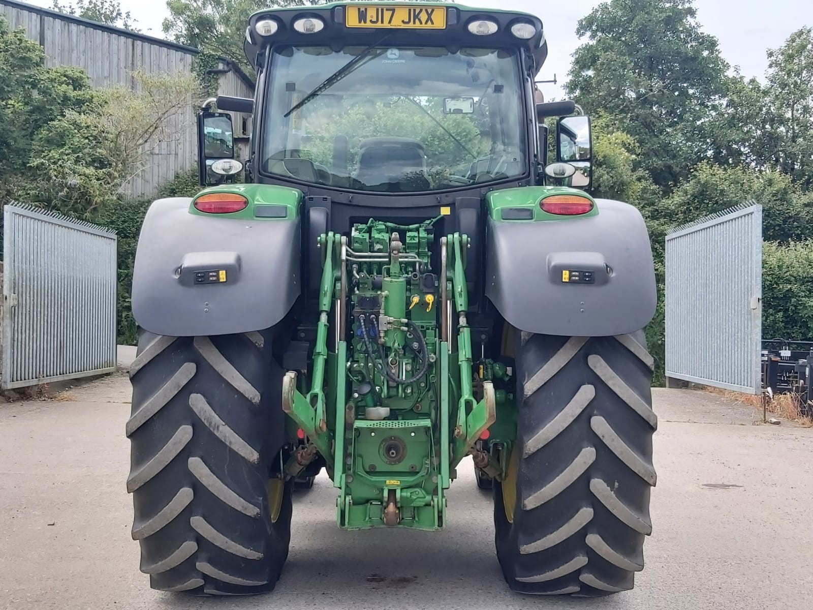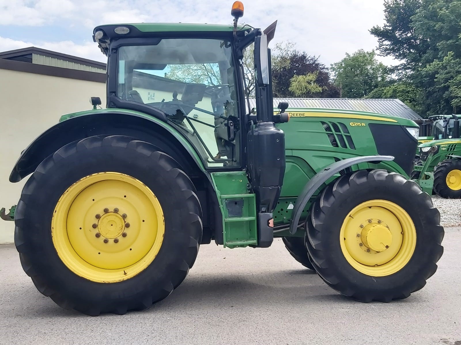 2017 JOHN DEERE 6215R. 50KPH AUTOPOWR, FULL SUSPENSION, AUTOTRAC READY, 4600 COMMAND CENTRE DISPLAY WITH AUTOTRAC ACTIVATION, 4 ELECTRIC REAR VALVES, HYDRAULIC TOPLINK, AIR TRAILER BRAKES, FRONT LINKAGE. ON 650/65R42 & 540/65R30 MICHELIN @ 40% APPROX.