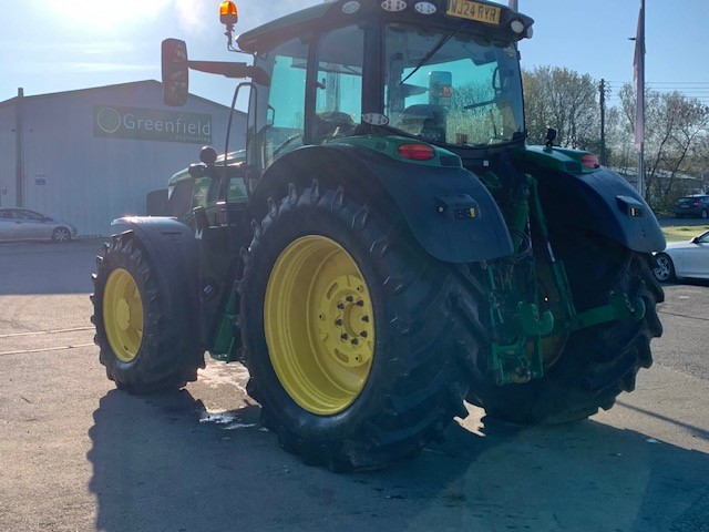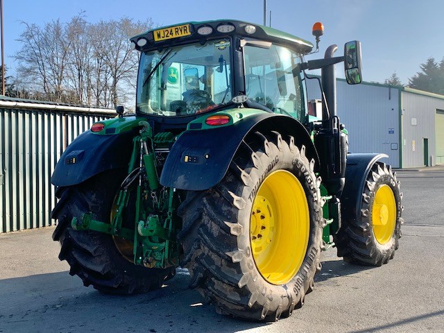 EX HIRE JOHN DEERE 6R 185. 50KPH AUTOPOWR WITH COMMAND PRO, FULL SUSPENSION, AUTOTRAC READY, GEN 5 DISPLAY WITH ACTIVATIONS, 155 LPM HYD PUMP WITH IPM TRIGGER, 4 REAR VALVES, HYDRAULIC TOPLINK, AIR BRAKES, FRONT LINKAGE & PTO, LED LIGHTS, REVERSIBLE FAN. ON 650/65R42 & 540/65R30 TRELLEBORG POWERGARD TO APRIL 2027.