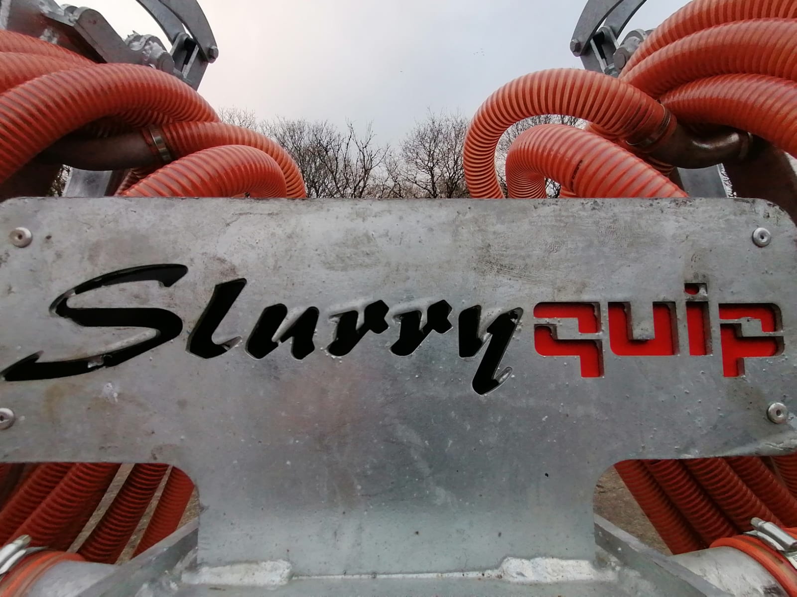 10.2M SLURRYQUIP TANKER MOUNTED DRIBBLE BAR. 50MM SPREADING PIPES, 300MM SPACING, MACERATOR HEAD. THREE STONE TRAPS. HYRAULIC FOLD WITH BREAK BACK ON BOOMS. FITTED WITH GPS FLOW METER WITH IN CAB DISPLAY. CONFORMS WITH FETF33.