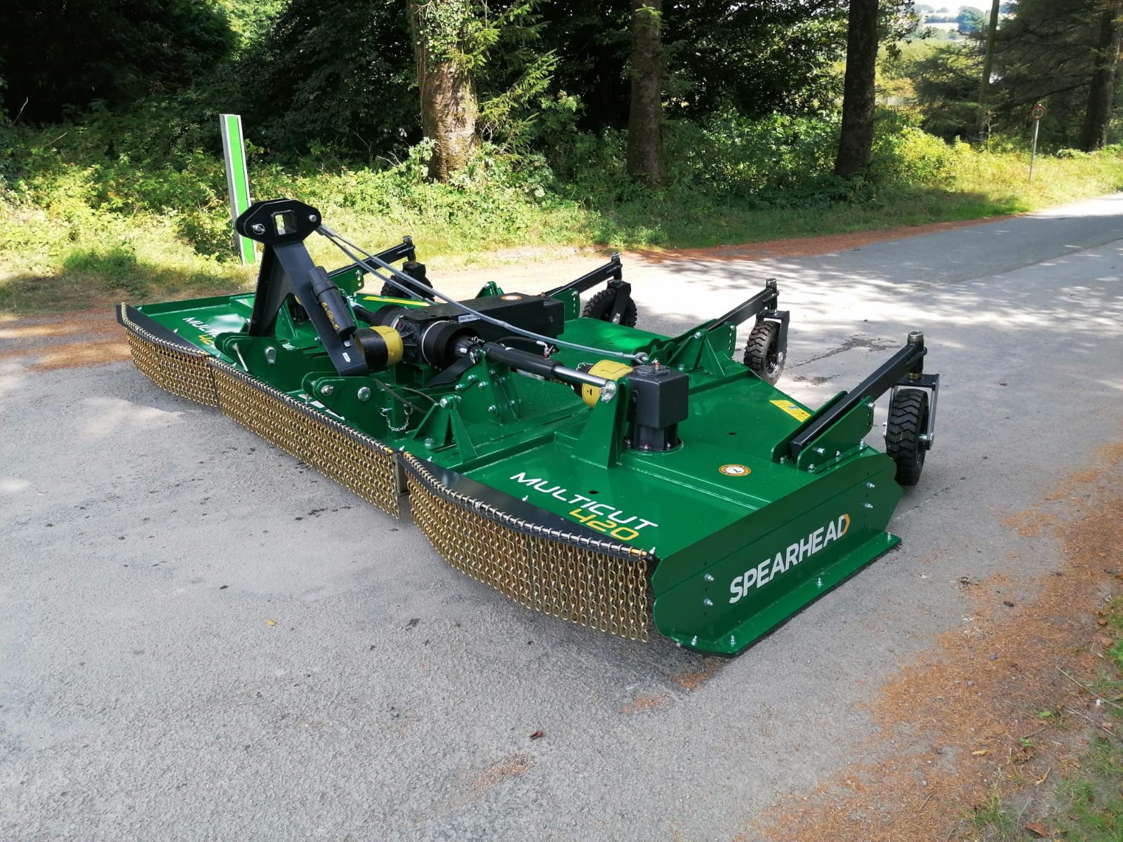 NEW SPEARHEAD MULTICUT 420 BATWING THREE ROTAR TOPPER, 4.2M CUTTING WIDTH, 2.7M TRANSPORT WIDTH, ADJUSTABLE CUTTING HEIGHT FROM 25MM TO 400MM, WING WORKING ANGLE FROM -15 TO + 45 DEGREES, WILL CUT MATERIAL UP TO 100MM. MIN 75HP REQUIREMENT