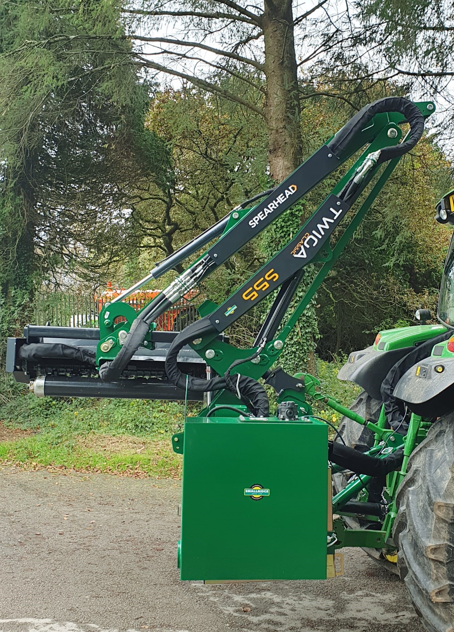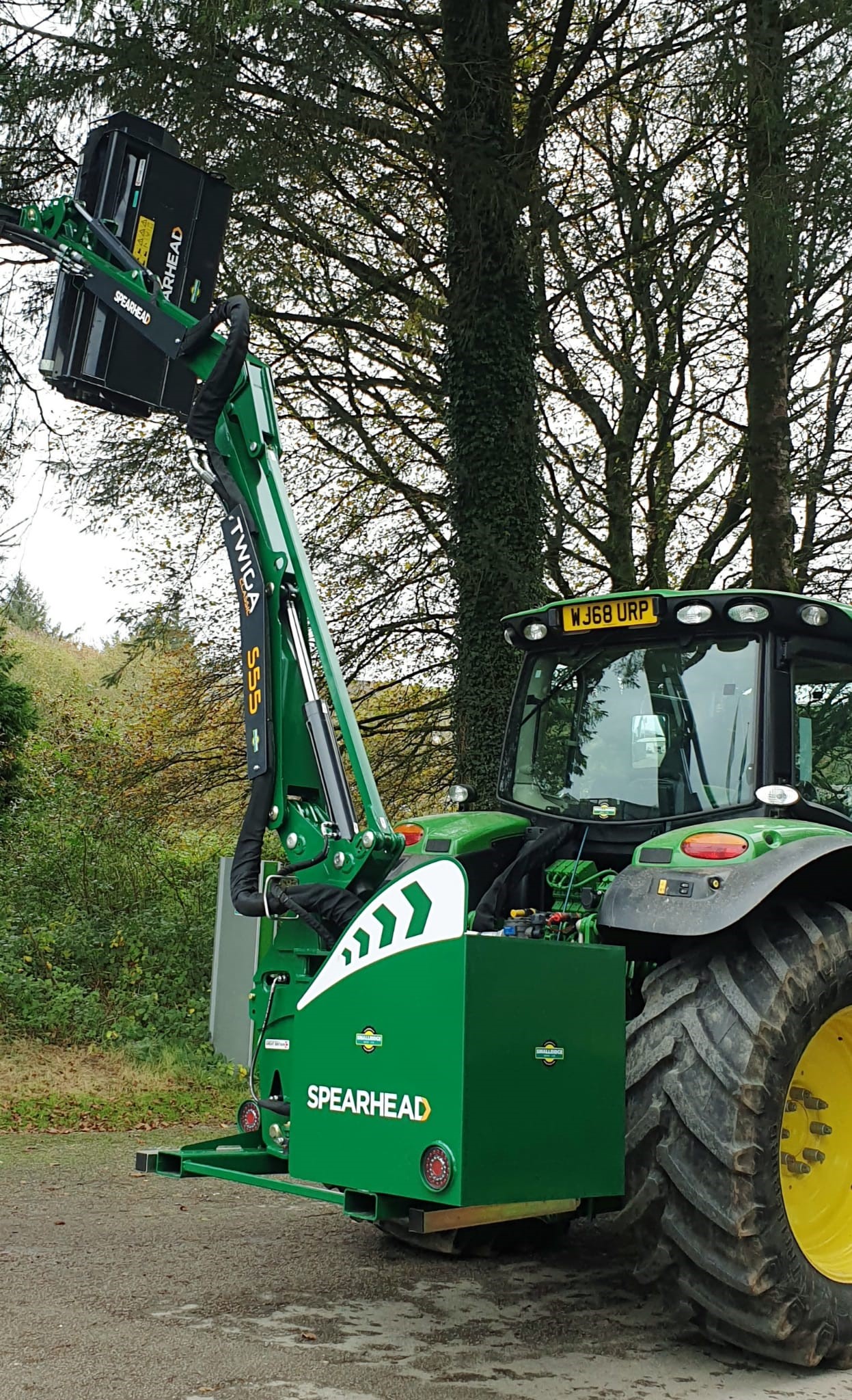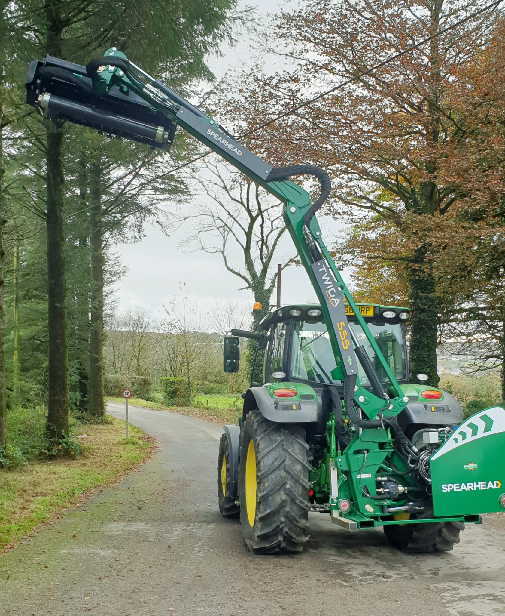 NEW SPEARHEAD TWIGA CLASSIC S55 HEDGE TRIMMER. 5.5 METRE MAXIMUMREACH, MP2 1.2 METRE FLAIL HEAD WITH T FLAILS, 65HP INDEPENDENT HYDRAULIC SYSTEM, PILOT PROPORTIONAL JOYSTICK CONTROL WITH CABLE ROTOR ENGAGEMENT, PARALLEL ARM LINKAGE & ROAD LEGAL LIGHTING.