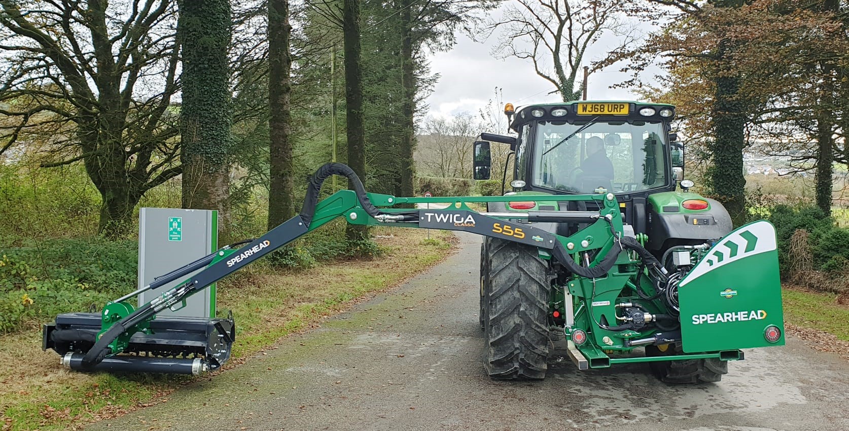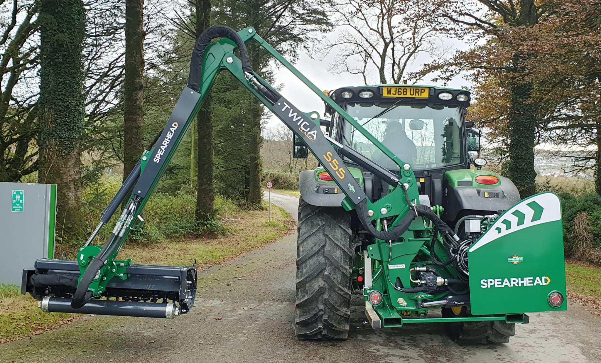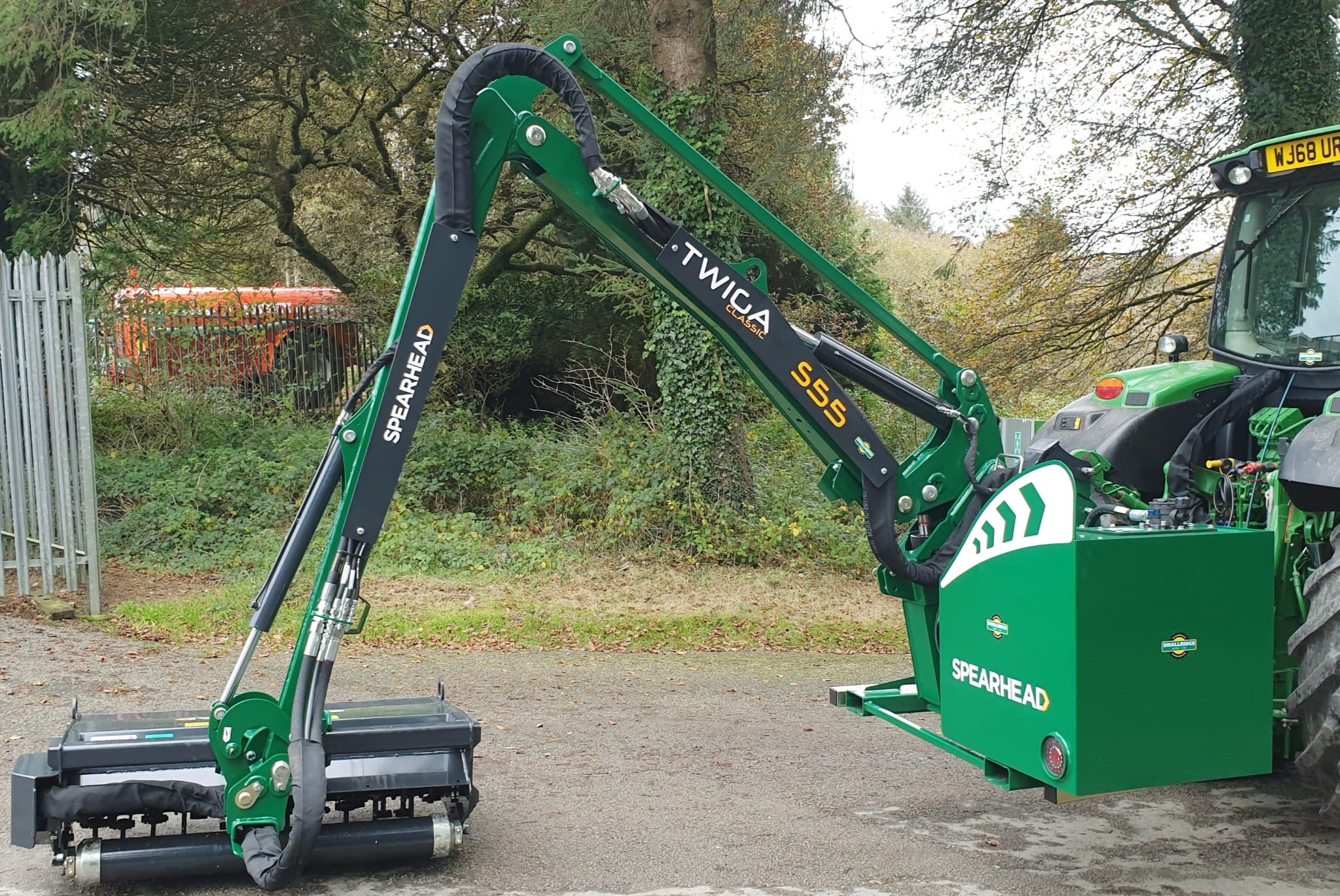 NEW SPEARHEAD TWIGA CLASSIC S55 HEDGE TRIMMER. 5.5 METRE MAXIMUMREACH, MP2 1.2 METRE FLAIL HEAD WITH T FLAILS, 65HP INDEPENDENT HYDRAULIC SYSTEM, PILOT PROPORTIONAL JOYSTICK CONTROL WITH CABLE ROTOR ENGAGEMENT, PARALLEL ARM LINKAGE & ROAD LEGAL LIGHTING.