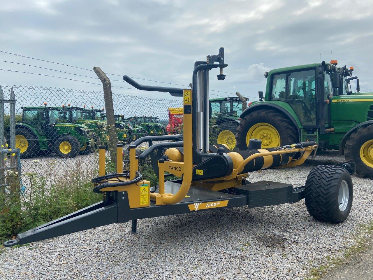 TANCO A100-EH FULLY AUTOMATIC TURNTABLE WRAPPER, HEAVY DUTY LONG WHEEL BASE CHASSIS, ADJUSTABLE LOADING ARM, AUTOMATIC HYD CUT AND START. ROAD LIGHTS. 750MM DISPENSER. TRAILED MACHINE FOR ROUND BALES. WITH REMOTE & END BALE TIP